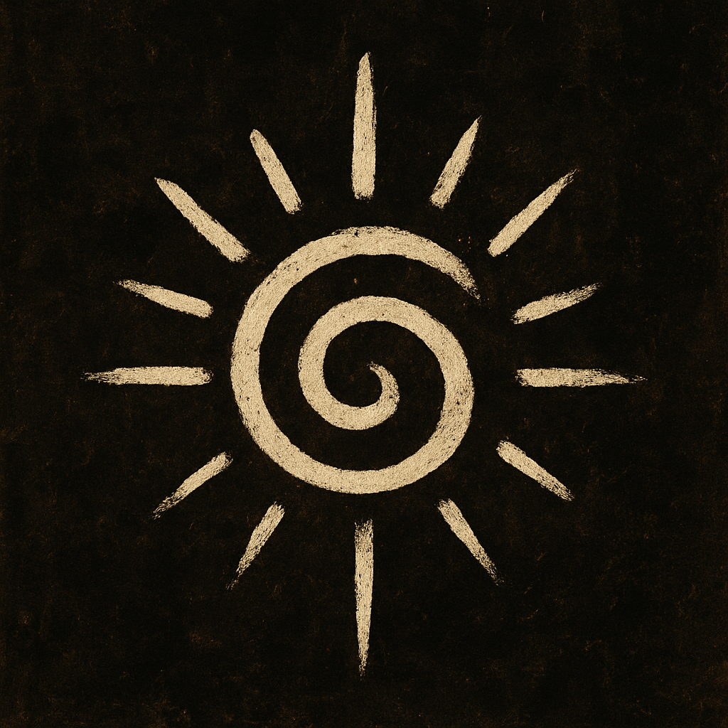 The Basic Sigil of the Cindrael is a luminous, flame-kissed symbol worn close to the voice or heart. It often appears as a simple radiant line or sunburst etched over the palm, throat, or chest — a sign that the bearer has received and carries a name from the Flame. It glows faintly in certain light, especially when spoken aloud.